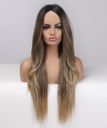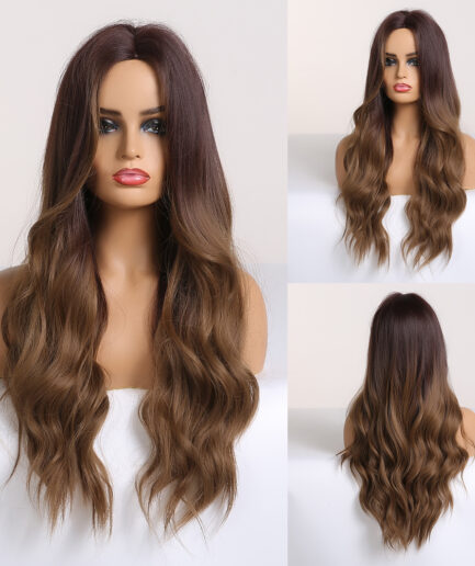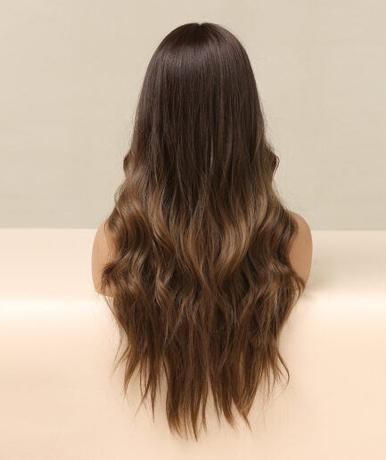 Perruque wavy Brun dégradé, Cheveux long Semi-Humain 24 pouce, 180% densité