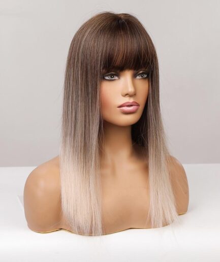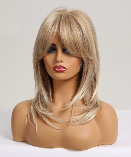 Perruque synthétique Naturelle, 130% densité, cheveux blond avec frange