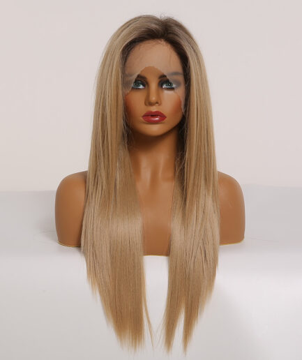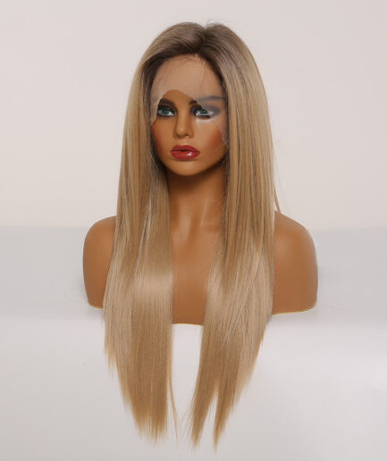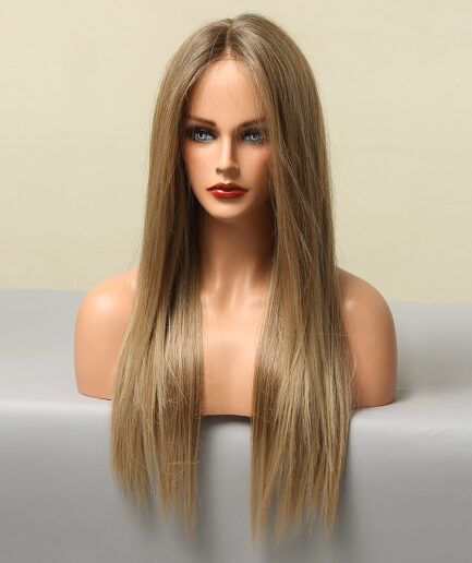 Perruque Lisse brun clair, Cheveux long Semi-Humain 24 pouce, 180% densité