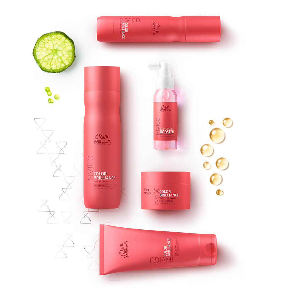 Après-shampooing Wella Professionals Vibrant Colour au caviar de citron vert. Pour une meilleure surface des cheveux et une couleur plus éclatante. Avec la technologie du bouclier anti-oxydant. L’histidine et la vitamine E aident à contrôler le processus d’oxydation après la coloration. La molécule d’encapsulation du cuivre maintient la vivacité. Color Brilliance offre jusqu’à sept semaines de protection de la couleur grâce à l’utilisation régulière du shampooing Invigo Color Brilliance.